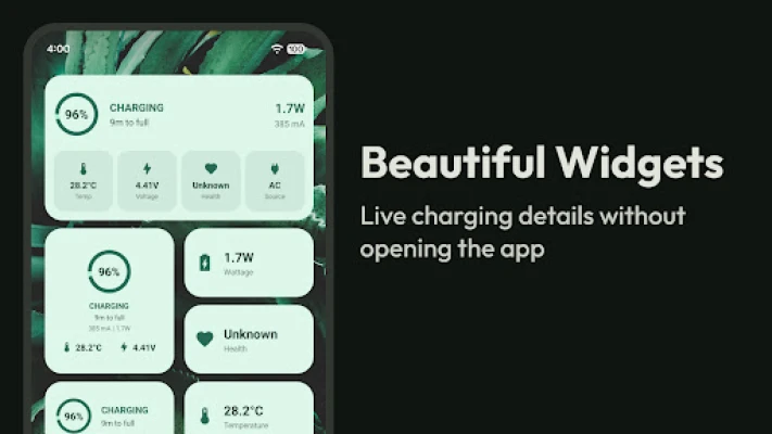 Pero AmpereFlow va más allá de la carga: es tu guardián integral de la batería. Monitorea proactivamente el voltaje y la temperatura en tiempo real, protegiendo tu dispositivo de posibles daños por sobrecalentamiento o sobrecargas y prolongando su vida útil. Personaliza tu experiencia con un velocímetro de batería ajustable a tu gusto y configura alertas de nivel para estar siempre un paso adelante. Con AmpereFlow, obtienes una visión holística y un control absoluto sobre el motor de tu dispositivo, disfrutando de la tranquilidad de saber que cada amperio está optimizado para un rendimiento superior.