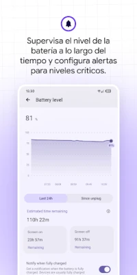 Battery Guru no solo informa, sino que te empodera con funcionalidades prácticas. Evalúa la eficiencia de tus cargadores y cables siguiendo la velocidad de carga, el voltaje y la potencia en vatios y corriente en tiempo real, lo que te permite seleccionar los accesorios más óptimos. Mantente siempre al tanto con alarmas personalizables para niveles de batería bajos, carga completa o temperaturas elevadas, configurando sonidos e iconos a tu gusto. Para una consulta inmediata, los widgets adaptables en tu pantalla de inicio muestran el nivel, la temperatura y el estado de carga con un diseño intuitivo.