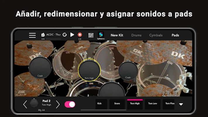 DrumKnee 3D se distingue de cualquier otra aplicación de batería gracias a características innovadoras. Experimenta una integración perfecta con Splitteroo, permitiéndote aislar las pistas de batería de tus temas favoritos. Con esta capacidad, puedes crear kits personalizados utilizando los sonidos separados de bombo y caja, y luego tocar en vivo junto a la música original para una sesión de percusión verdaderamente inmersiva. Además, prepárate para una interactividad sin precedentes: coloca tu dispositivo en la rodilla y simula el pedal del bombo con un movimiento realista de patada, o si lo prefieres, mantén la tradición tocando con la punta de tus dedos.