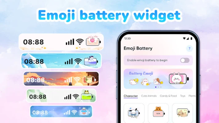 ¿Tu indicador de batería predeterminado te parece monótono y sin vida? Es hora de infundirle carácter y color a la experiencia de tu dispositivo móvil. Con Emoji Batería, la imaginación toma el control de tu barra de estado, transformando un simple número en una explosión de creatividad. Esta aplicación innovadora te permite personalizar completamente cómo percibes los niveles de carga de tu teléfono, dotándolos de un encanto inigualable y reflejando tu individualidad.