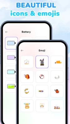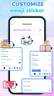 La versatilidad es el corazón de Emoji Batería. Ya sea que prefieras diseños minimalistas o una paleta de colores vibrantes, encontrarás el estilo perfecto que se alinee con tu estética. Decora la muesca o la parte superior de tu pantalla con temas exclusivos y añade pegatinas ingeniosas para una capa extra de personalización. Desde adorables animales y corazones tiernos hasta divertidas caras kawaii, cada opción convierte tu indicador de batería en una expresión única de tu personalidad, una característica distintiva en tu día a día digital. Haz que tu teléfono sea un reflejo auténtico de ti con Emoji Batería.
