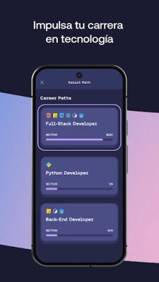 Dentro de Mimo, descubrirás rutas de aprendizaje completas y estructuradas, diseñadas para que domines lenguajes esenciales como Python, JavaScript, HTML, CSS, SQL, TypeScript y React. Ya sea que te interese el Front-End, Full-Stack o Backend, cada camino está optimizado para brindarte una base sólida y avanzar a tu propio ritmo. Podrás desarrollar aplicaciones, sitios web y herramientas innovadoras directamente en nuestro entorno de desarrollo móvil, ejecutando código Python, JavaScript y HTML dondequiera que estés, transformando cada oportunidad en progreso real.