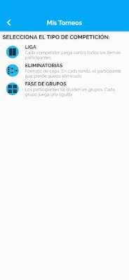 Mis Torneos es tu gestor de torneos ideal. Crea y administra tus competiciones: añade participantes, genera el calendario, gestiona los resultados y consulta la clasificación fácilmente. Otorga acceso a otros usuarios y comparte la información online para que todos sigan el progreso de los encuentros.